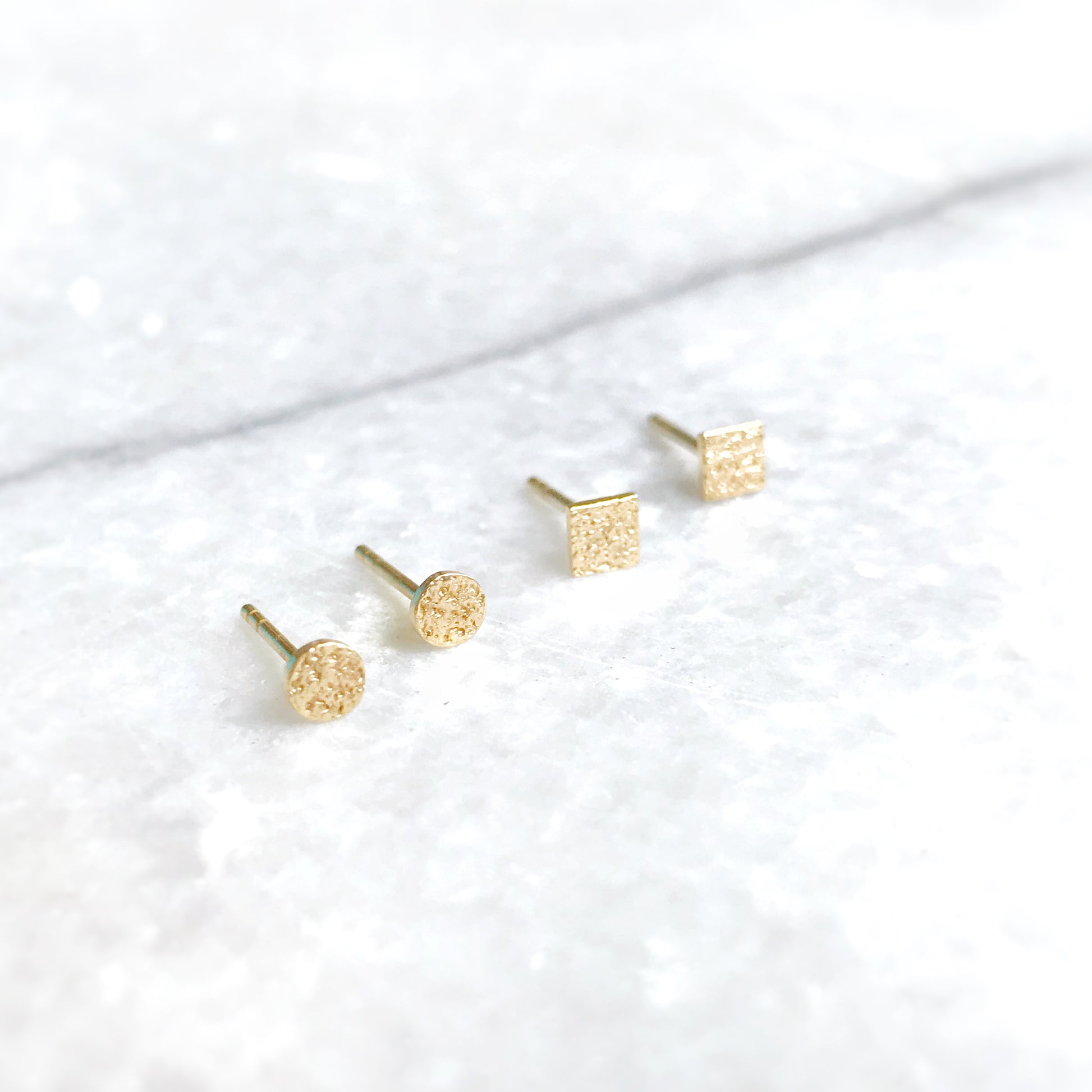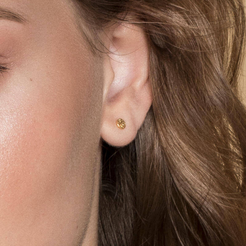 Cool small stud earrings with a rocky surface. Purchase them in either silver or 18K gold plated silver.