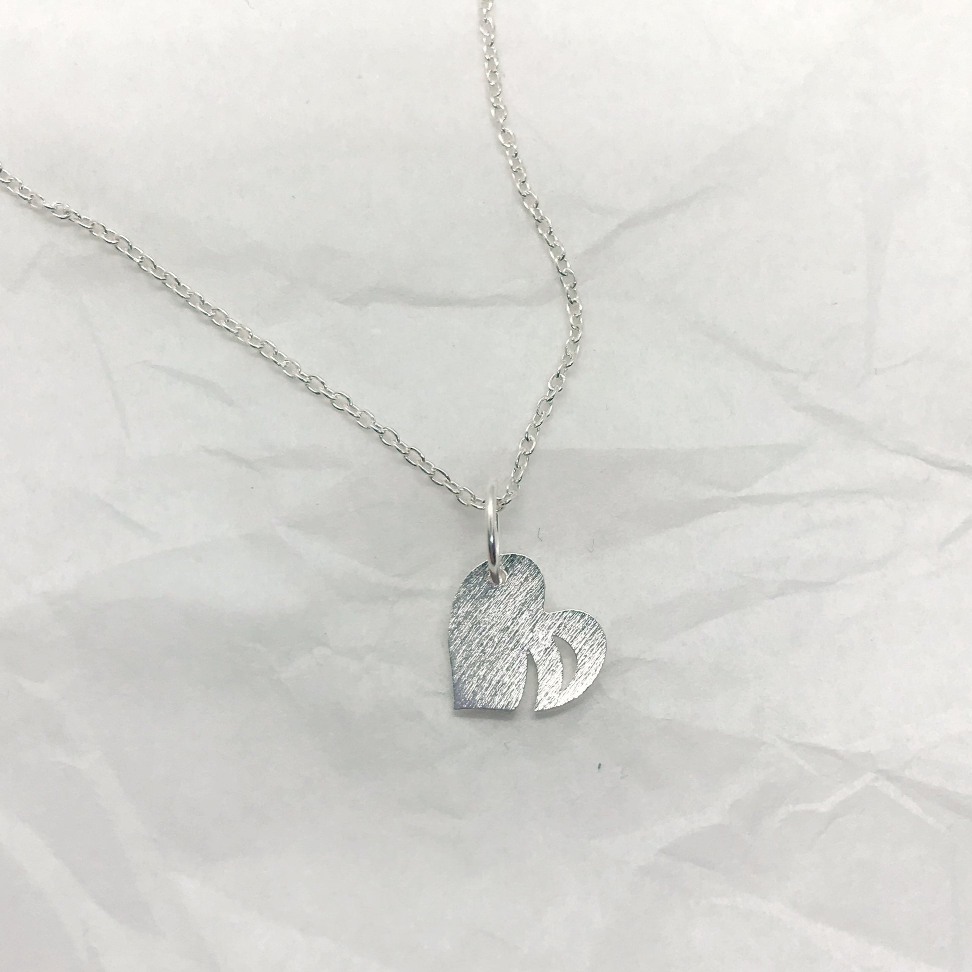 Anchor chain necklace with a leaf love pendant with a brushed surface. You can purchase this in either silver or 18K gold plated silver. The back of the pendant is engraved with the Anita June logo and the 925 silver mark. A small Anita June logo tag is also attached to the chain.
